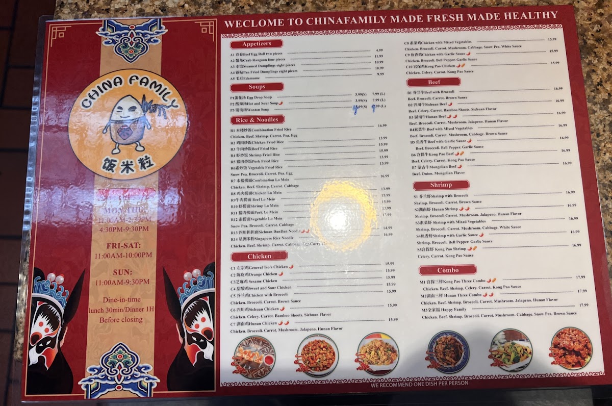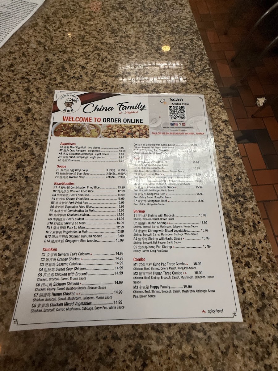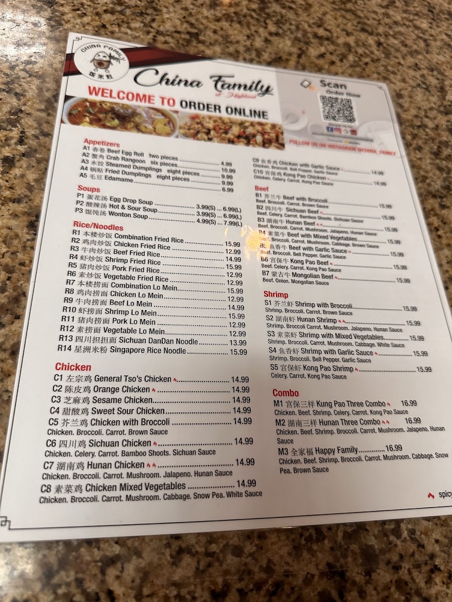 China Family Restaurant at Highland Menu