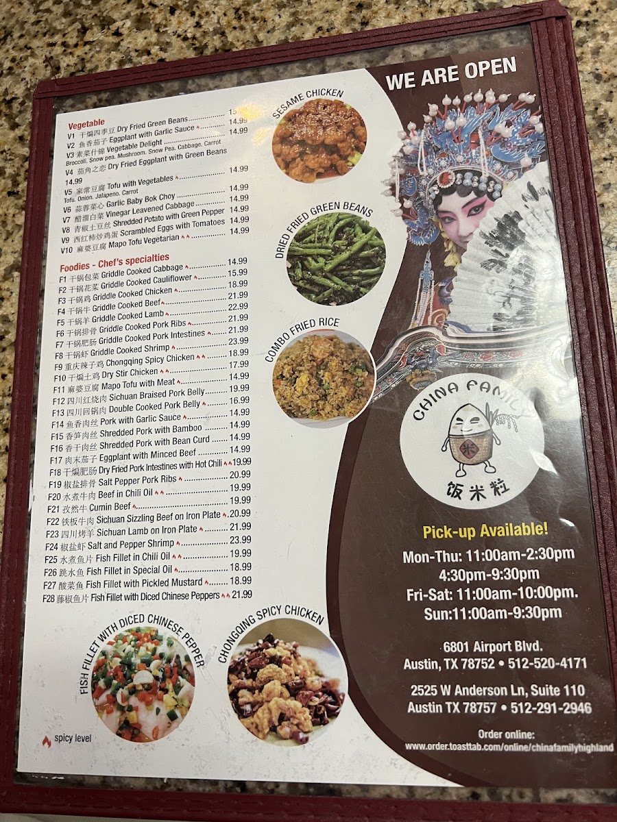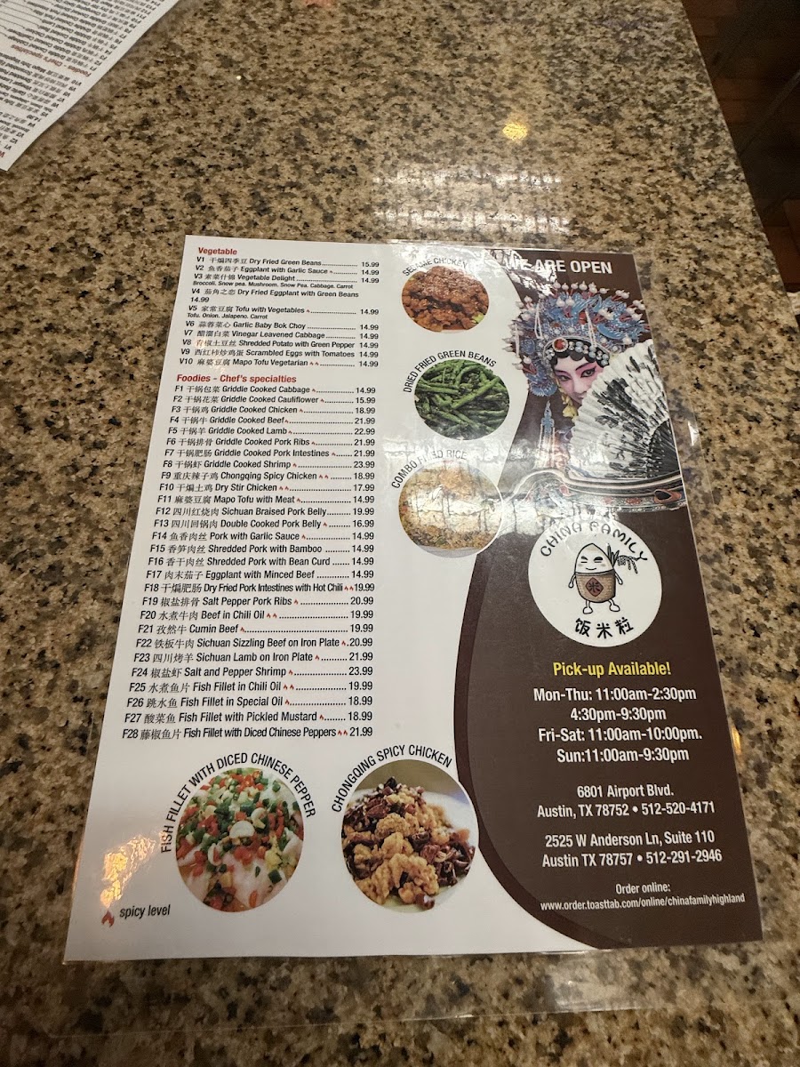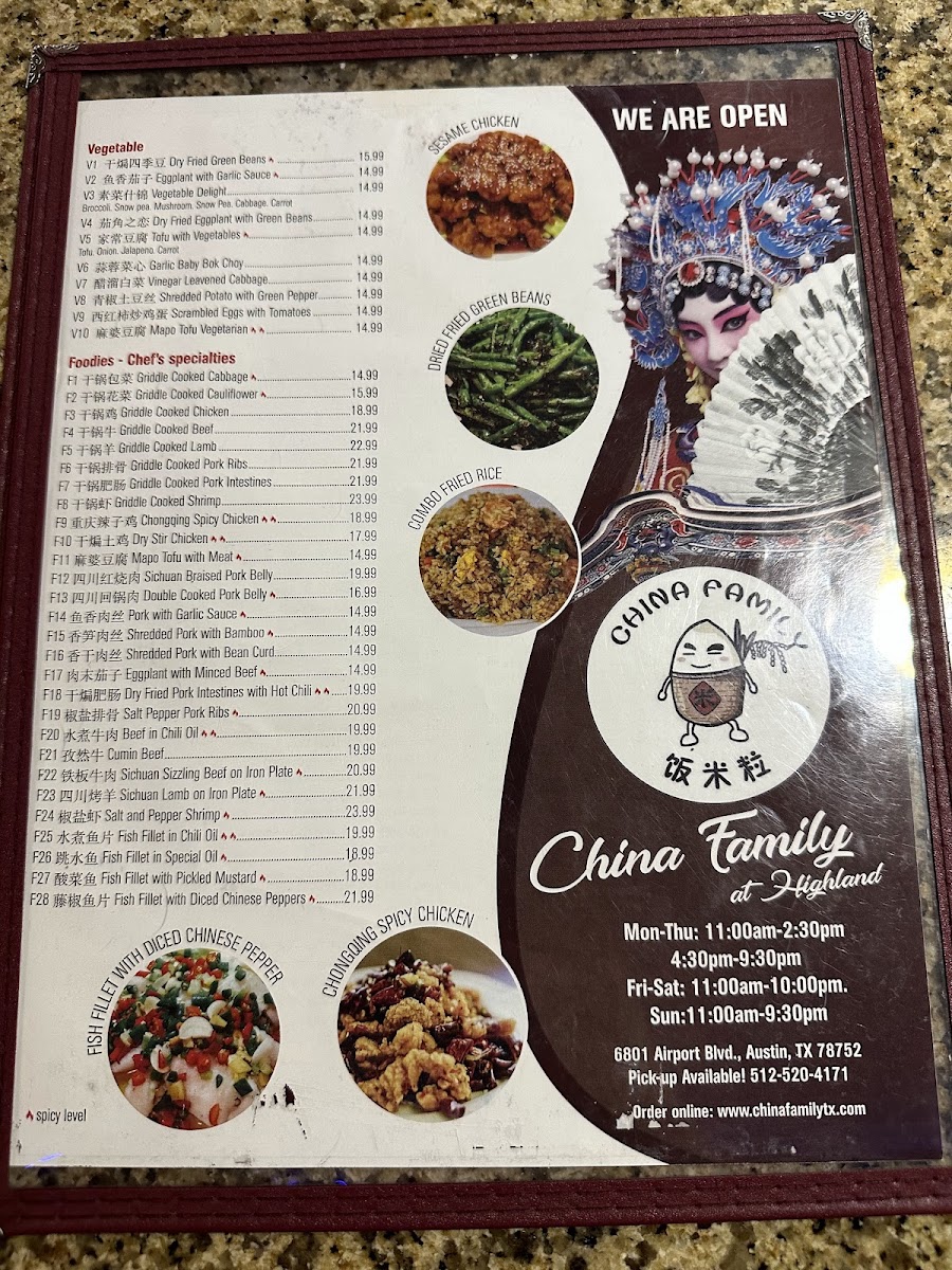 China Family Restaurant at Highland Menu